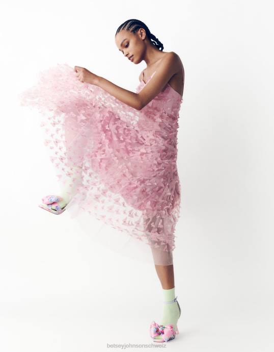 Frauen Betsey Johnson wunderschönes Schmetterlings-Maxikleid Rosa Kleidung ZJFF268
