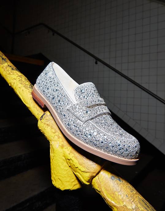 Lassen Sie sich von dem mit Strasssteinen verzierten Aron-Mokassin verzaubern. Diese luxuriösen Schuhe haben eine klassische Penny-Loafer-Silhouette, verziert mit schimmernden Strasssteinen für einen Hauch von Glamour.