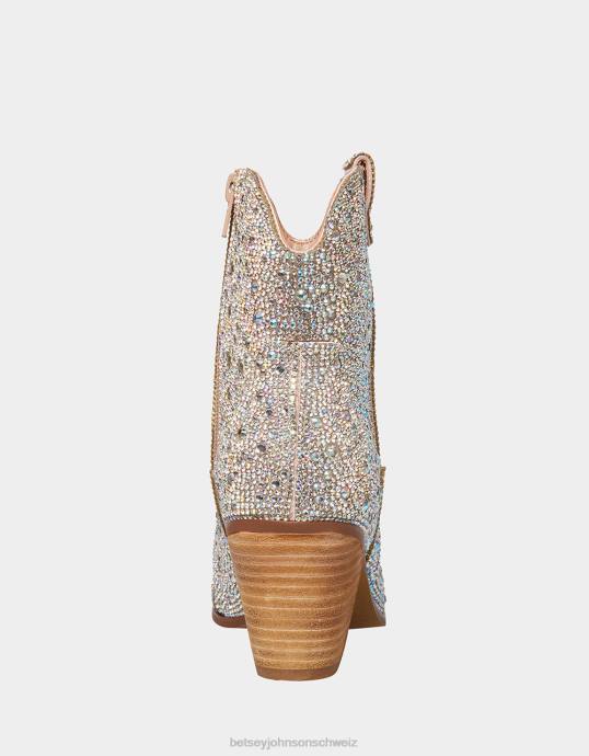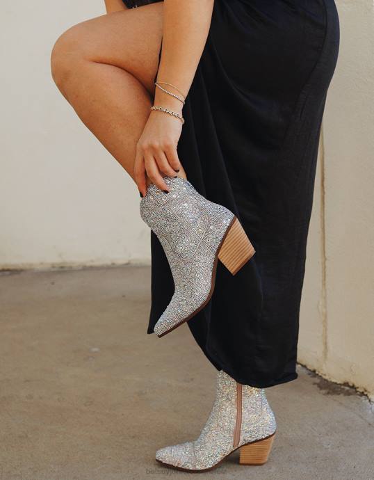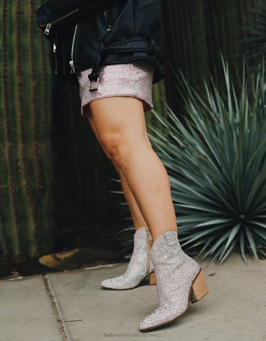 Betreten Sie diese vom Western inspirierte Ära mit dem Selbstvertrauen einer Diva, geschmückt mit den glamourösen Allover-Strass-Westernstiefeletten. Tanzen Sie zur Musik und bewegen Sie Ihre Füße im Takt während dieser Festival- und Konzertsaison und zeigen Sie Ihren Stil mit diesen lustigen, glitzernden Stiefeln.